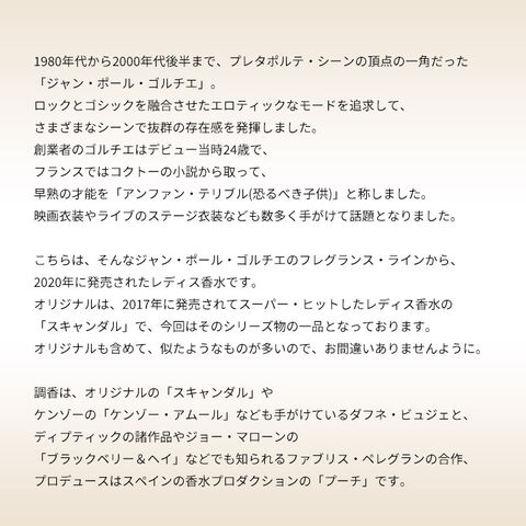 こちらは、そんなジャン・ポール・ゴルチエのフレグランス・ラインから、2020年に発売されたレディス香水です。