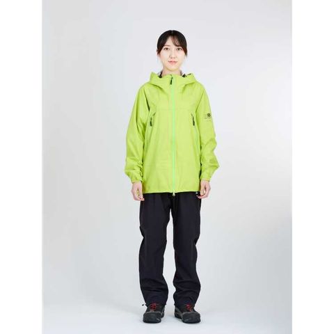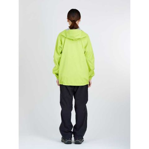 リュックサックとの相性を考慮したポケット位置、ヘルメット対応フード設計、腕上げを考慮したパターンワーク、両腕後方にはリフレクタープリントを配置、ポケット地には抗菌加工素材を採用、また携行性を考慮し身頃をフード内に収納可能など細部の仕様にまでこだわったデザインに。