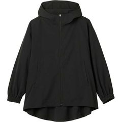 撥水、UVケア(UPF15-30、紫外線カット率85%以上)機能を持つ素材のジャケット。素材自体に小さな穴があいており、通気性に優れていて衣服内を快適に保ちます。オフショルダーで、少しゆったりめのシルエット。後の丈は長めの設定です。背中の控えめなフレアーがエレガントな雰囲気を演出します。デイリー、スポーツの行き帰りなどさまざまなシーンでおすすめのアイテムです。