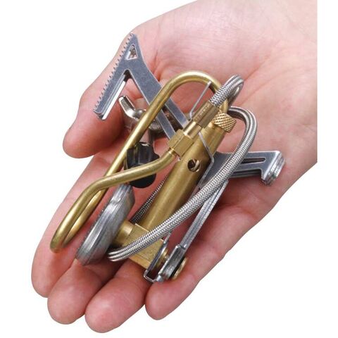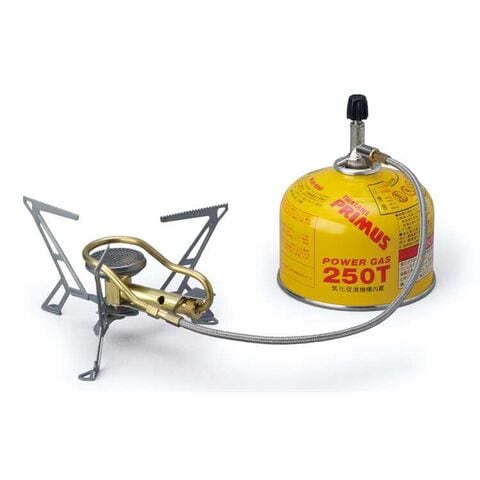 ガスカートリッジと燃焼器具をホースを介して接続するタイプ。重心が低くゴトクも大きめに設計されているのでクッカーを乗せた時の安定性・安全性が高く調理し易くなっています。脚部兼ゴトクを開いて固定するロック機構が付いた非常にコンパクトに収納できるシンプルな分離型ストーブです。バーナーヘッドに沿うように配置したプレヒートパイプは燃焼熱でガスの気化を促進させ安定した燃焼を実現させます。