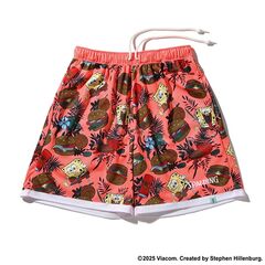 スポンジ・ボブと大好物のハンバーガーの総柄プリントショーツ。