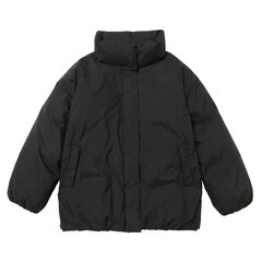 ●同素材のノーカラーダウンコートとセットアップで着用可能