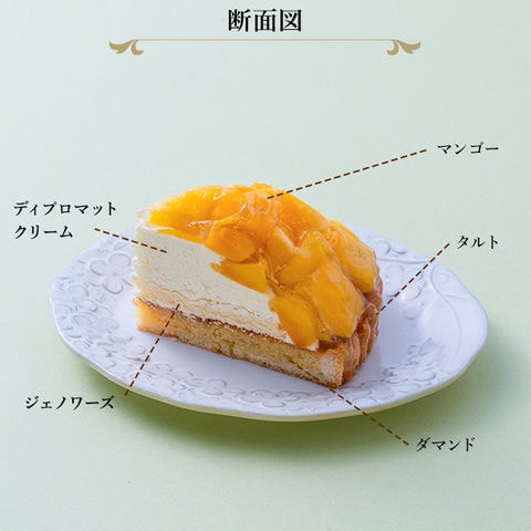 銀座千疋屋が厳選したフレッシュなマンゴーをたっぷり使った、爽やかなタルトです。