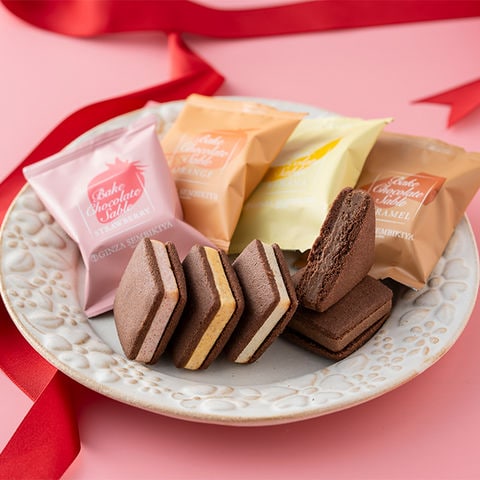 キャラメルが香る焼きチョコをサブレ生地でサンドしました。口に入れた瞬間に広がるキャラメルのまろやかな甘みと、香ばしいほろ苦さが重なり合い、深みのある味わいをお楽しみいただけます。