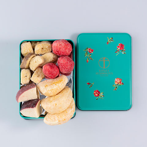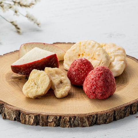 香り豊かな“ゆめのかいちご(長崎県産)”、甘酸っぱい“紅玉りんご(国産)”、爽やかな香りの“不知火(国産)”、甘くコクのある“バナナ(フィリピン他)”をフリーズドライにし、ホワイトチョコレートを染み込ませました。