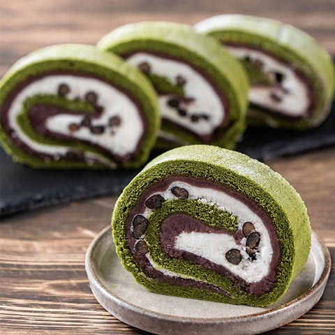 厳選された京都産の宇治抹茶を煉り込んだスポンジに、北海道産のえりも小豆を使用した特製のこし餡と、ホイップクリーム、その上に希少な北海道産の大納言小豆を糖蜜に漬け、じっくり炊き上げた花園万頭が誇る「ぬれ甘なつと」を均一に散りばめ、腕利きの職人が一本一本丁寧に巻き上げた逸品です。