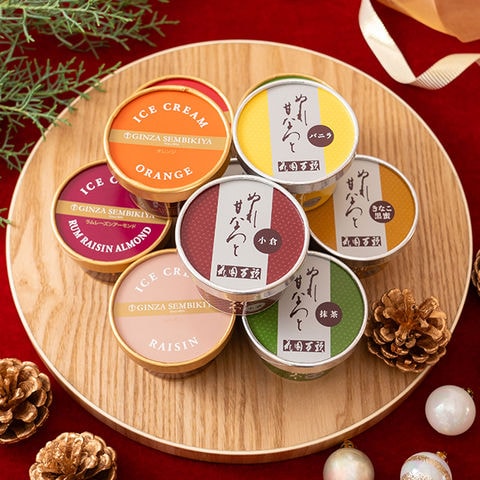 発売以来七十余年を数える花園万頭の代表銘菓「ぬれ甘なつと」をちりばめた「花園万頭」のアイスと、フルーツ専門店ならではの厳選素材を使った「銀座千疋屋」のショコラアイスを詰合せました。 程良い甘さとコク深い味わいをお楽しみください