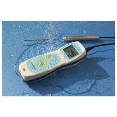 防水型 デジタル温度計 TP-100MRは、食品内部温度・液温を簡単に測定できる突き刺しセンサータイプの防水型 ハンディ温度計です。食品製造分野の調理・加工現場を知り尽くした技術と経験により、現場の皆様が本当に安心して使える防水ハンディ温度計を自信を持ってお届けします。本体は安心防水構造(JIS C 0920 「保護等級 6」)で水がかかっても問題なく、また、丸洗いもできます。プローブは完全防水構造(JIS C 0920-2003 「保護等級 7」)をクリアしています。本体には抗菌樹脂を採用しており、センサープローブもオールスレンレス製で大変衛生的です。また、耐油性ケーブルを採用していますので、ケーブルに食用油が付着しても問題ありません。電池の交換をせず連続2000時間(約3ケ月)使用できる省電力設計です。また、充電式電池も使用できる環境に配慮した製品です。