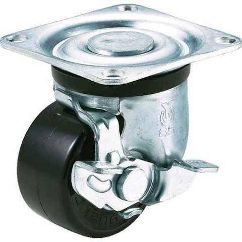 ユーエイキャスター [HG-75PBS] プレート式 自在 低床キャスター フェノール 車輪径75mm ストッパー付き Hタイプ HG-S型 取付
