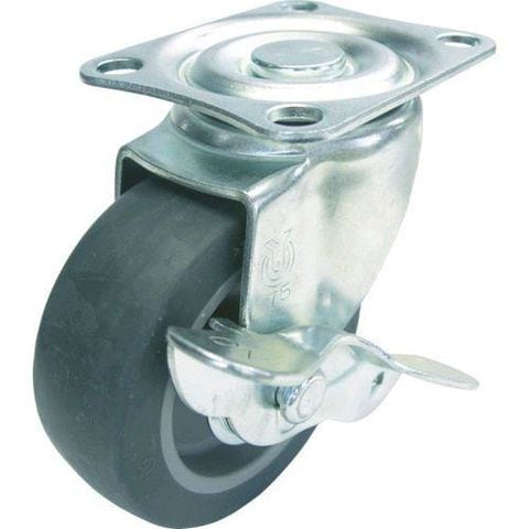 【受注生産品】ユーエイキャスター [SG-100ELS] プレート式 自在 キャスター エラストマー 車輪径100mm ストッパー付き Sタイプ