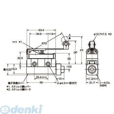 一般のリミットスイッチに比べて、動作に必要な力(OF)が小。