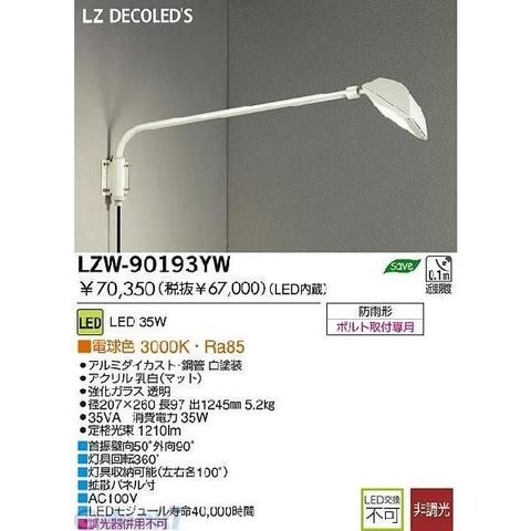 大光電機 DAIKO LZW-90193YW LED屋外アウトドア LZW90193YW