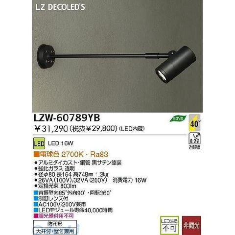 大光電機 DAIKO LZW-60789YB LED屋外スポットライト LZW60789YB