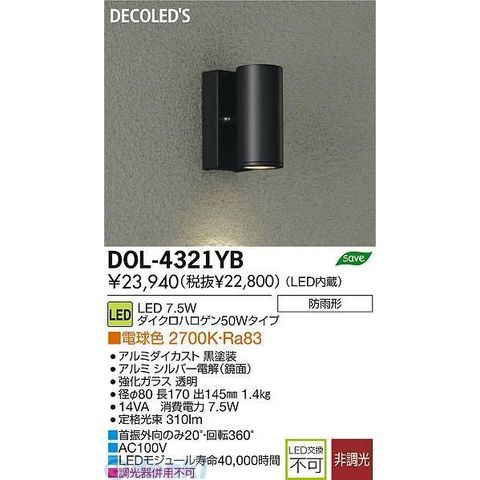 大光電機 DAIKO DOL-4321YB LED屋外スポットライト DOL4321YB