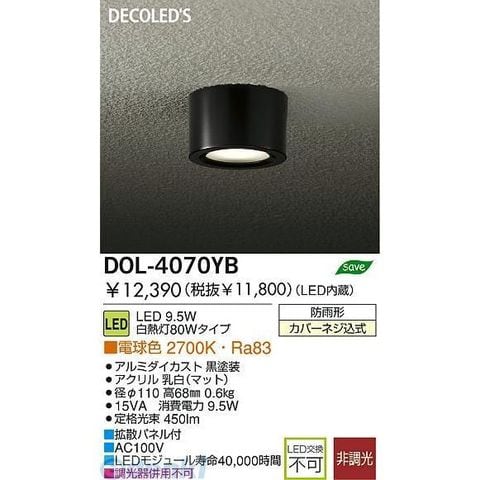 大光電機 DAIKO DOL-4070YB LED屋外シーリングダウンライ DOL4070YB