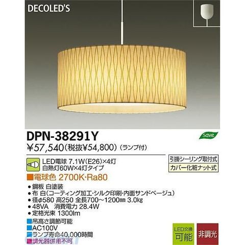 大光電機 DAIKO DPN-38291Y LEDペンダント DPN38291Y