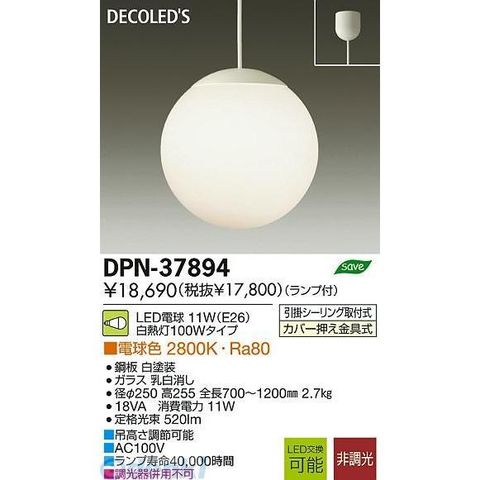 大光電機 DAIKO DPN-37894 LEDペンダント DPN37894