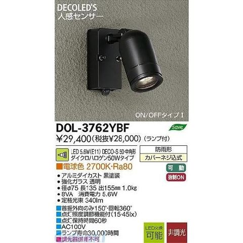 大光電機 DOL-3762YBF LED屋外スポットライト