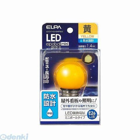 朝日電器 ELPA LDG1Y-G-GWP253 LED電球G40形防水E26Y色 LDG1YGGWP253 エルパ イエロー