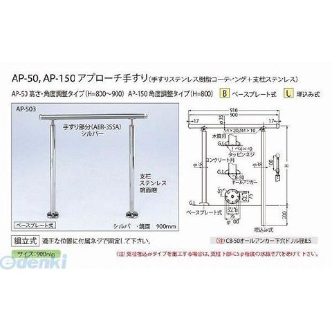 シロクマ AP-50U シルバー/鏡面 アプローチ手すり【U】 AP50Uシルバー/鏡面