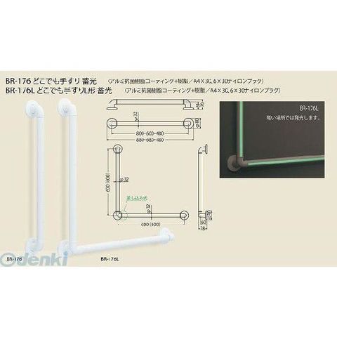 シロクマ BR-176 800MM アイボリ どこでも手すり蓄光