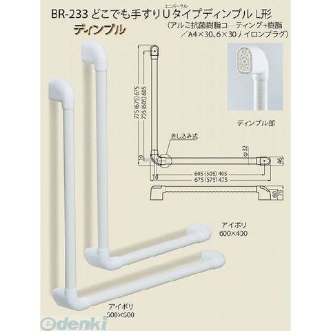 シロクマ BR-233 600×400 アイボリ どこでも手すりUタイプディンプルL形