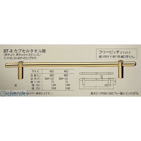 シロクマ BT-8 400MM 金 カプセルタオル掛