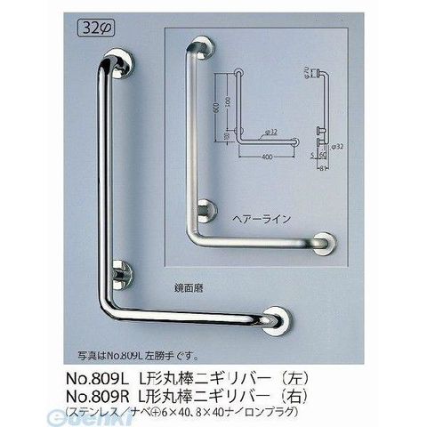 シロクマ NO-809L 【左】 ヘアーライン ステンL形丸棒ニギリバー