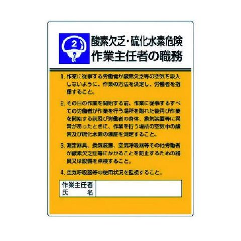 ユニット ユニット 80802 作業主任者職務板 酸素欠乏硫化水素危・エコユニボード・600X450 371-6953