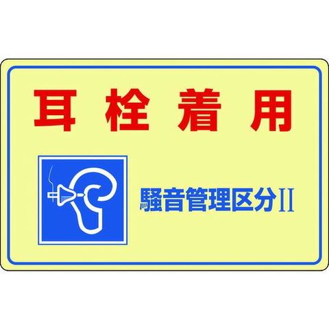 日本緑十字社 030201 騒音-201 耳栓着用 騒音管理区分2 300×450 硬質エンビ