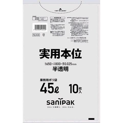 サニパック NJ44HCL ゴミ袋 NJ44実用本位45L半透明 10枚