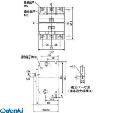 【端子形状】(主回路)フルアップ端子M5(接続可能電線:Φ1.6~Φ2.6、2~14mm2)(操作回路)アップ端子M3(接続可能電線:Φ0.8~Φ1.4、0.5~1.25mm2)