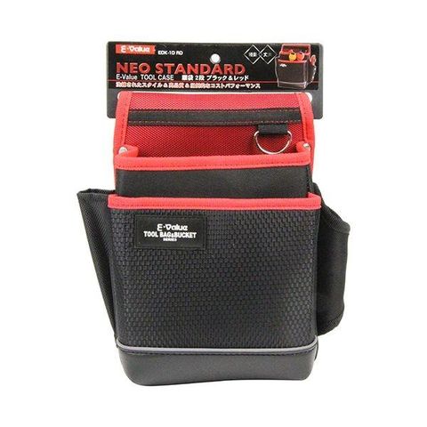 4977292148856 腰袋 2段 ブラック&レッド EDK-1D RD E-Value 藤原産業 E-Value腰袋 道具袋