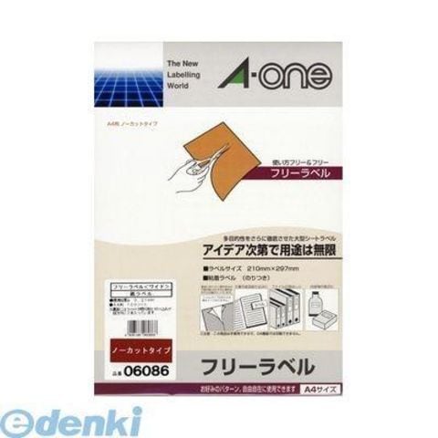 A-one エーワン 06086 フリーラベルワイド ノーカット インクジェット用ラベルシール A4判 100シート mm
