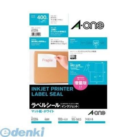 A-one(エーワン) [61204] ラベルシール[インクジェット] A4 4面 100シート入 4906186612043
