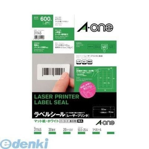 A-one エーワン 31145 ラベルシール[レーザープリンタ] A4 30面 四辺余白付 角丸 20シート入 マット紙