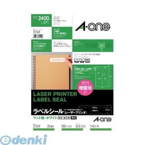 A-one エーワン 31149 ラベルシール[レーザープリンタ] A4 24面 四辺余白付 角丸 100シート入 マット紙