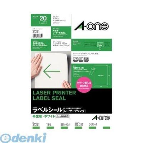 A-one エーワン 31381 ラベルシール[レーザープリンタ]再生紙 A4 1面 20シート入 マット紙 ラベルシール再生紙