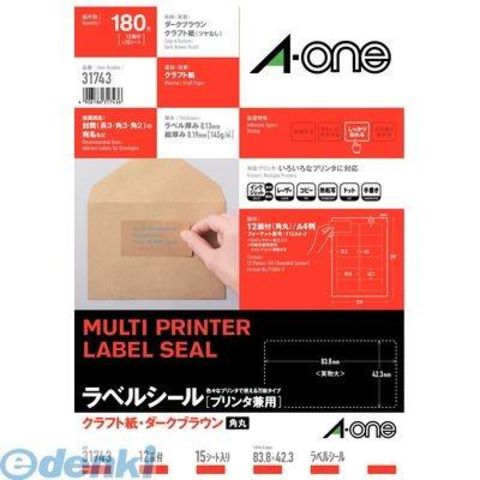 A-one エーワン 31743 ラベルシール[プリンタ兼用]クラフト紙・ダークブラウン A4 角丸 12面 15シート入