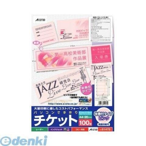 A-one エーワン 51472 パソコンで手作りチケット 5面半券付 ピンク 手作りチケット5面半券付ピンク 100枚分