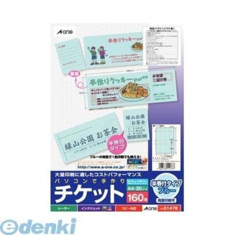 A-one エーワン 51476 パソコンで手作りチケット 8面半券付 ブルー 手作りチケット8面半券付ブルー 160枚分