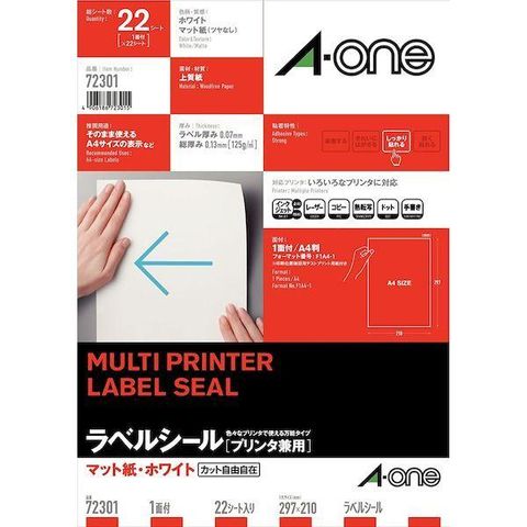 A-one エーワン 72301 ラベルシール[プリンタ兼用] A4 1面 22シート入 ノーカット 静電気防止加工