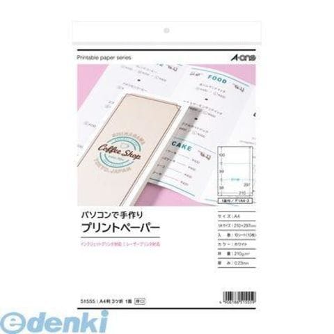 A-one エーワン 51555 パソコンで手作りプリントペーパー A4判3ツ折り兼用 厚口 1面 白無地 スリーエム mm