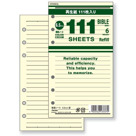 レイメイ藤井 DR4003L 111徳用ノート 横罫 クリーム バイブルサイズ 徳用システム手帳リフィル 再生紙 6穴 RF