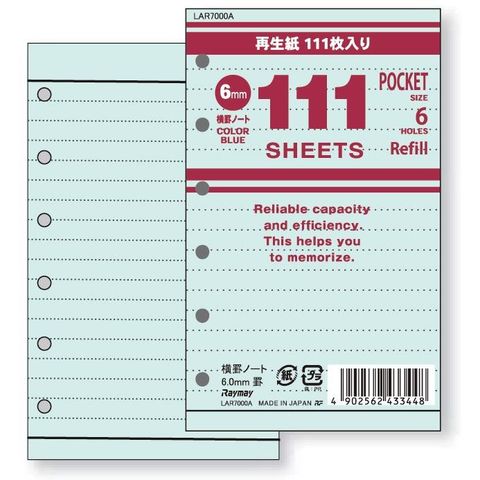 レイメイ藤井 LAR7000A 111徳用ノート 横罫 ブルー 徳用システム手帳リフィル 6mm横罫 再生紙 ミニ6穴サイズ