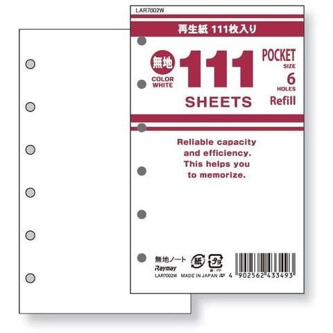 レイメイ藤井 LAR7002W 111徳用ノート 無地 ホワイト 手帳リフィル ポケット ポケットサイズ 6穴
