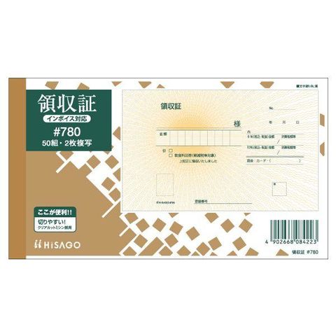 ヒサゴ #780 領収証(製本タイプ)【1冊】 2枚複写 製本伝票 4902668084223 領収証2P 軽減税率対応版