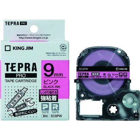 キングジム KING JIM SC9PW テプラPROテ-プ強粘着タイプピン/黒字【1巻8m】 テプラPROテープ強粘着 ピンク