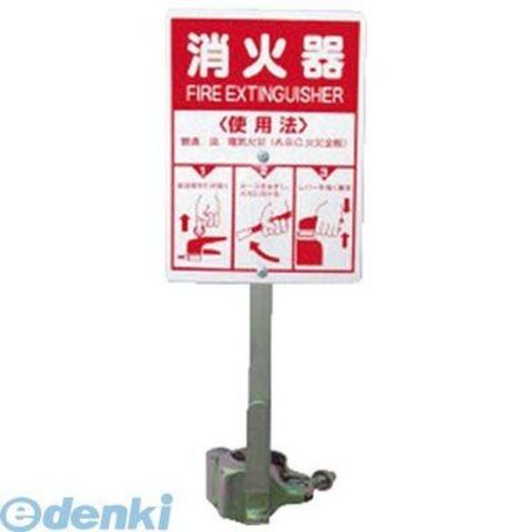 ●消火器が単管にスッキリ固定。設置場所が目立つ標識付の省スペース型。