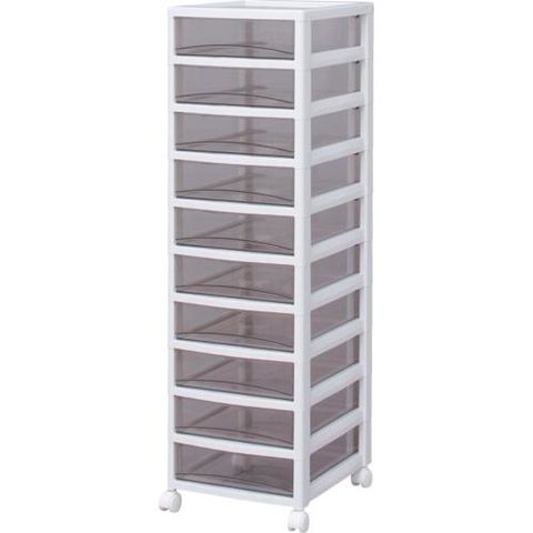 ●引き出しの材質にスチロールを採用しているため透明度が高く、中身が確認しやすいクリアタイプのチェストです。